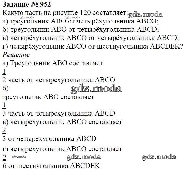 ОТВЕТ на задание № 952 Учебник по Математике 5 класс Виленкин