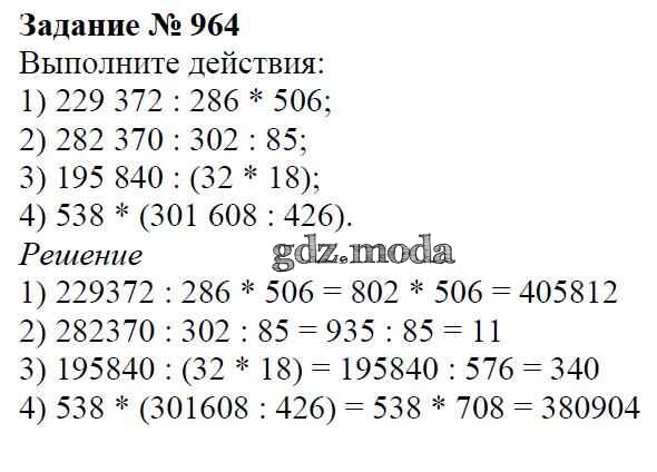 ОТВЕТ на задание № 964 Учебник по Математике 5 класс Виленкин