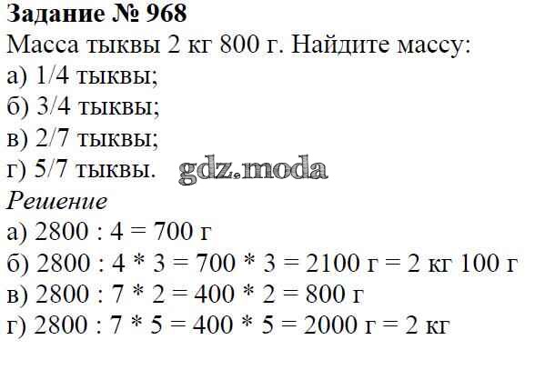 ОТВЕТ на задание № 968 Учебник по Математике 5 класс Виленкин