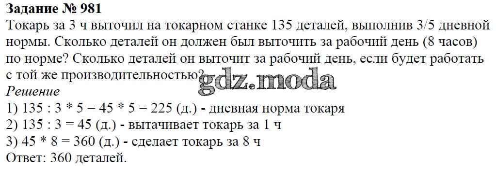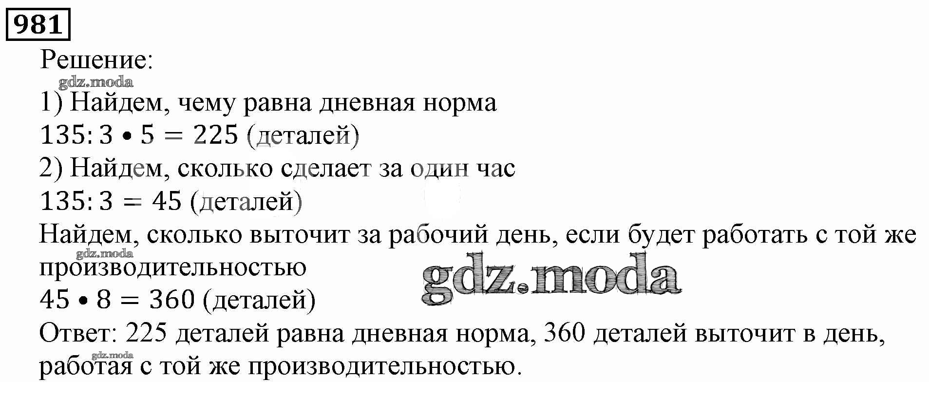 ОТВЕТ на задание № 981 Учебник по Математике 5 класс Виленкин