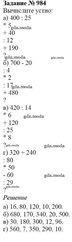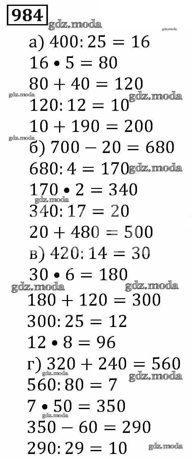ОТВЕТ на задание № 984 Учебник по Математике 5 класс Виленкин