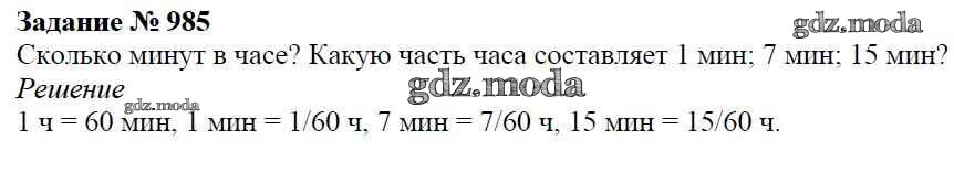 ОТВЕТ на задание № 985 Учебник по Математике 5 класс Виленкин