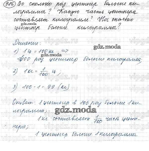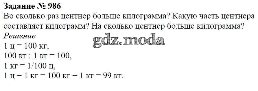 ОТВЕТ на задание № 986 Учебник по Математике 5 класс Виленкин