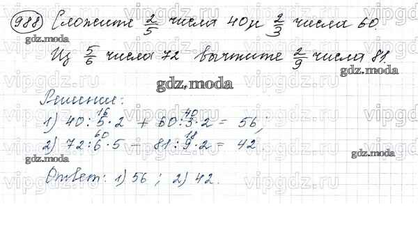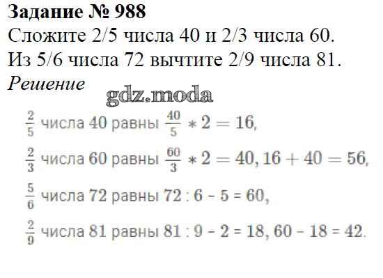 ОТВЕТ на задание № 988 Учебник по Математике 5 класс Виленкин