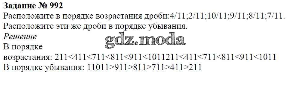 ОТВЕТ на задание № 992 Учебник по Математике 5 класс Виленкин