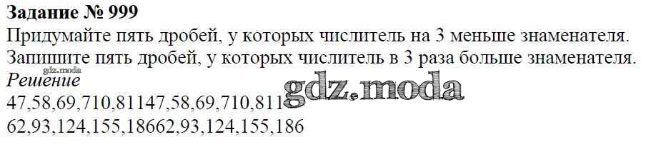 ОТВЕТ на задание № 999 Учебник по Математике 5 класс Виленкин