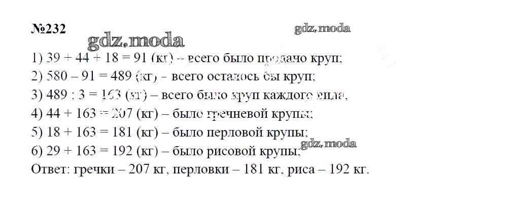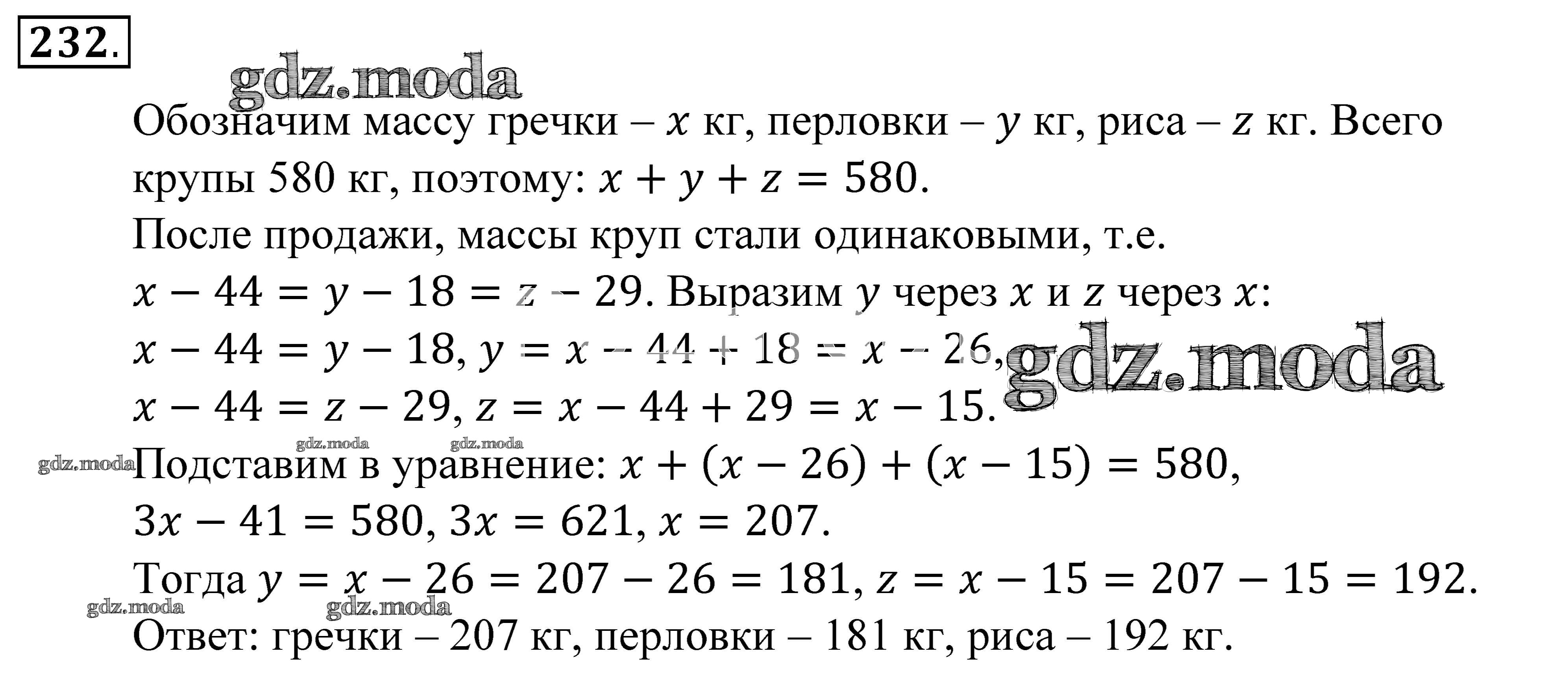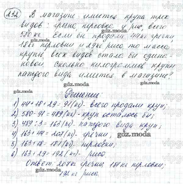 ОТВЕТ на задание № 232 Учебник по Математике 5 класс Зубарева