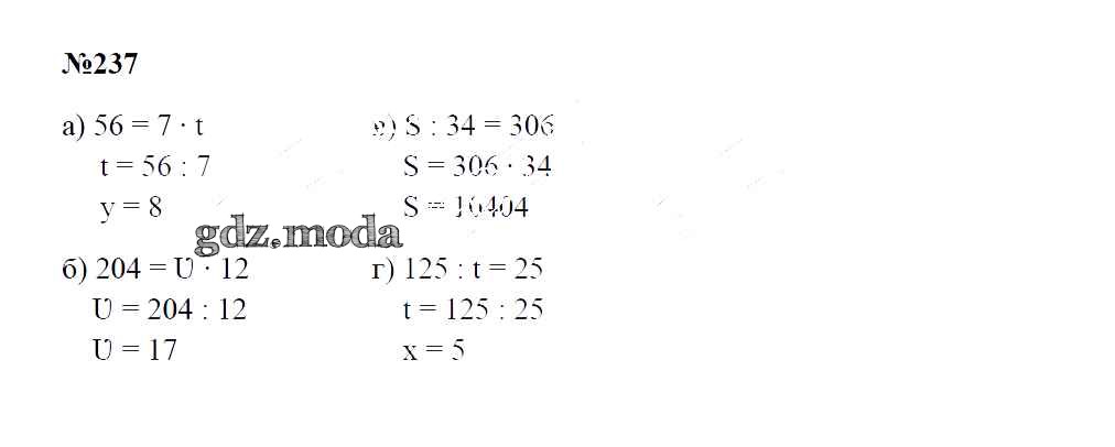 ОТВЕТ на задание № 237 Учебник по Математике 5 класс Зубарева