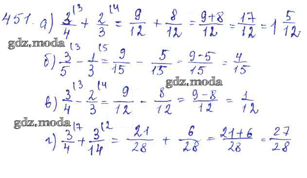 ОТВЕТ на задание № 451 Учебник по Математике 5 класс Зубарева