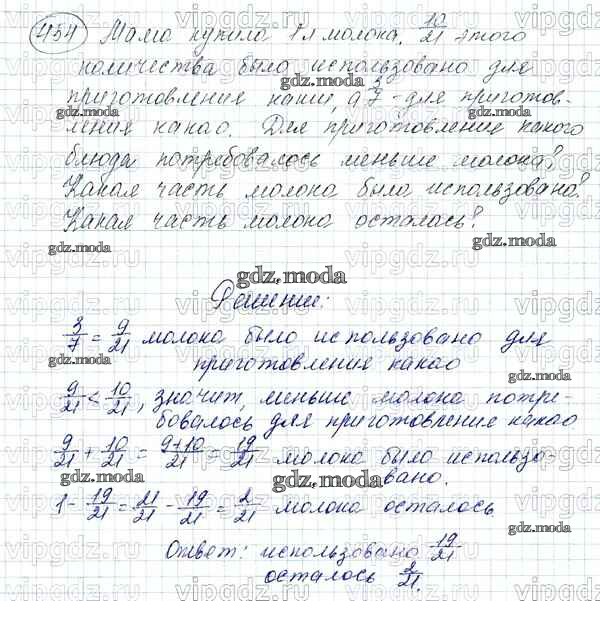 ОТВЕТ на задание № 454 Учебник по Математике 5 класс Зубарева