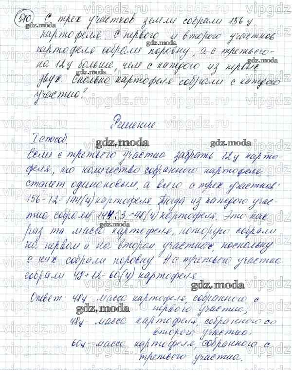 ОТВЕТ на задание № 510 Учебник по Математике 5 класс Зубарева