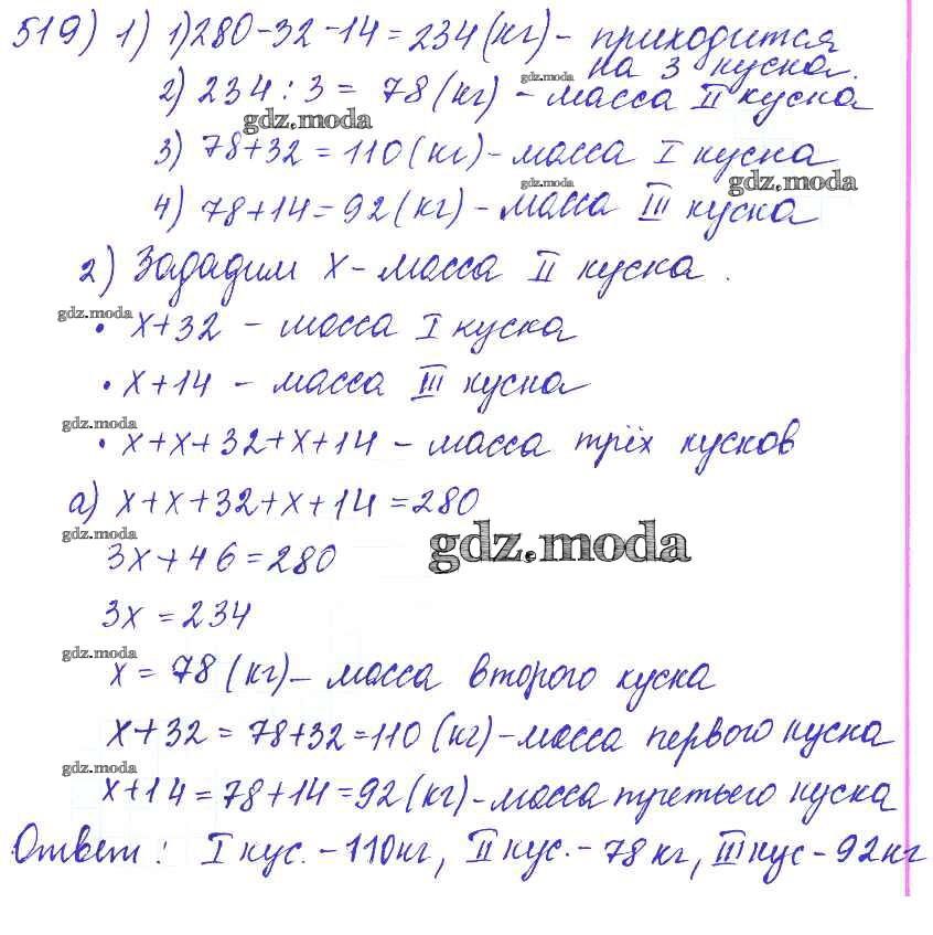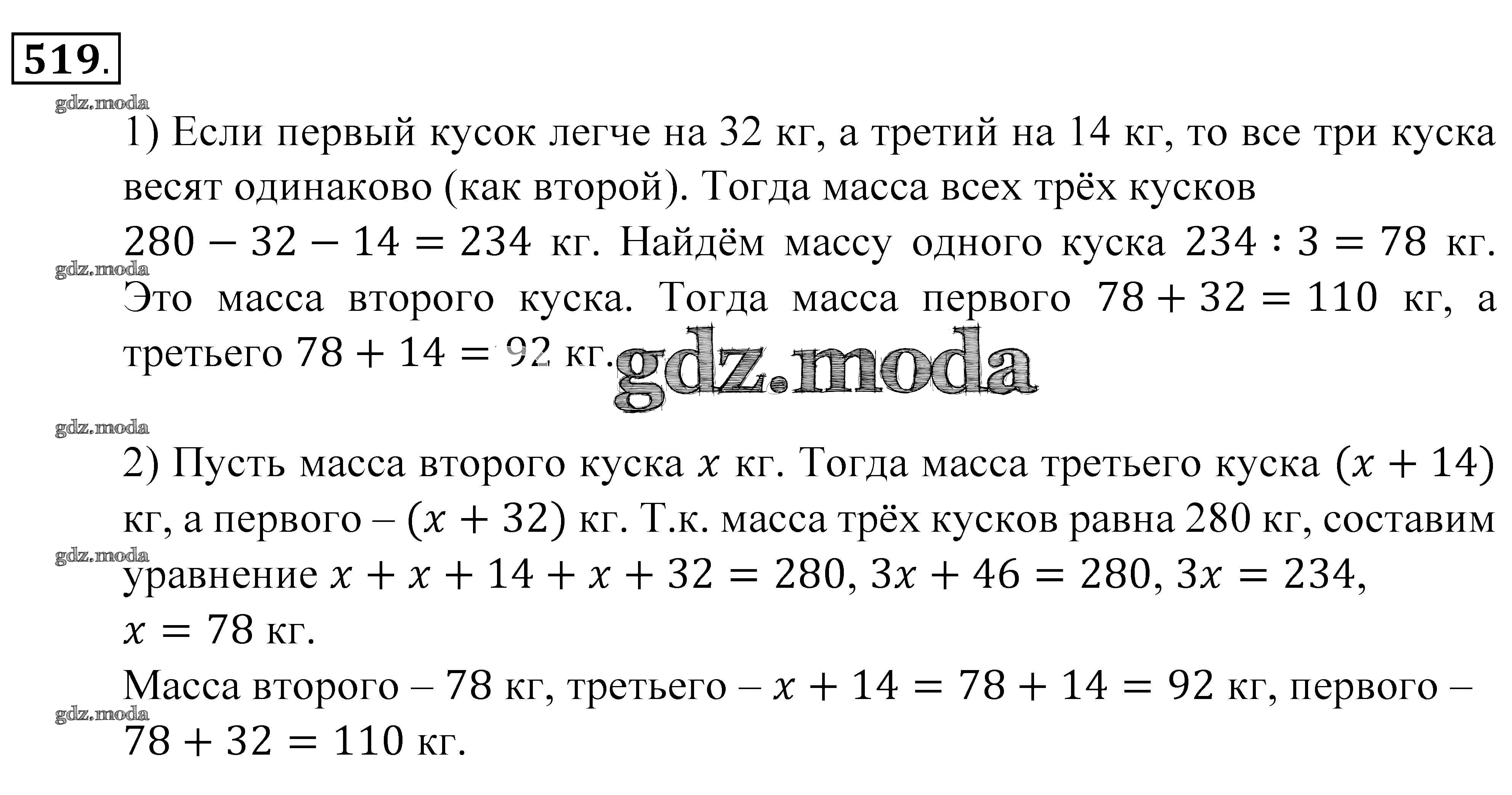 ОТВЕТ на задание № 519 Учебник по Математике 5 класс Зубарева