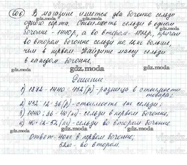 ОТВЕТ на задание № 606 Учебник по Математике 5 класс Зубарева