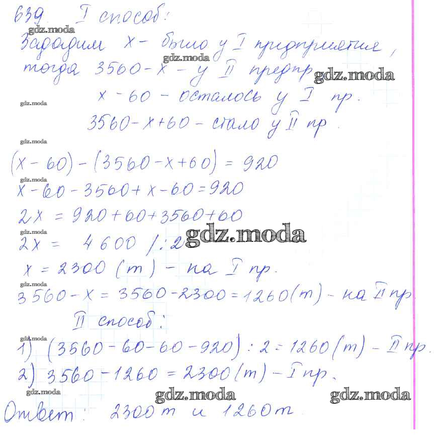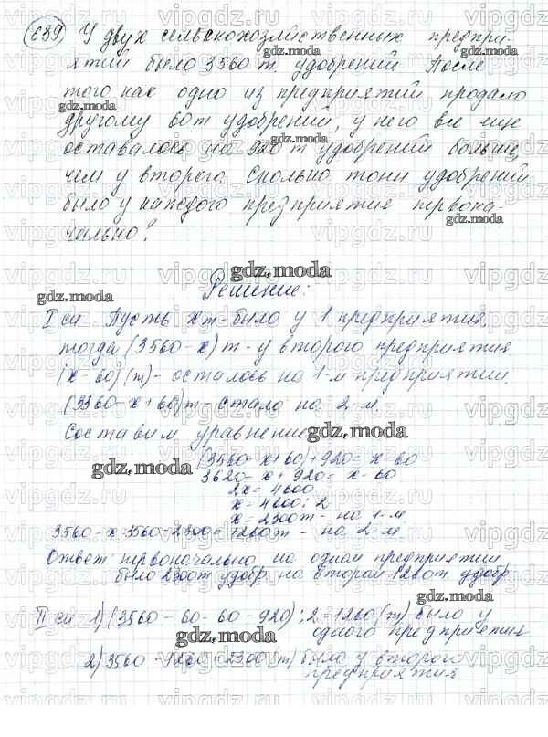ОТВЕТ на задание № 639 Учебник по Математике 5 класс Зубарева