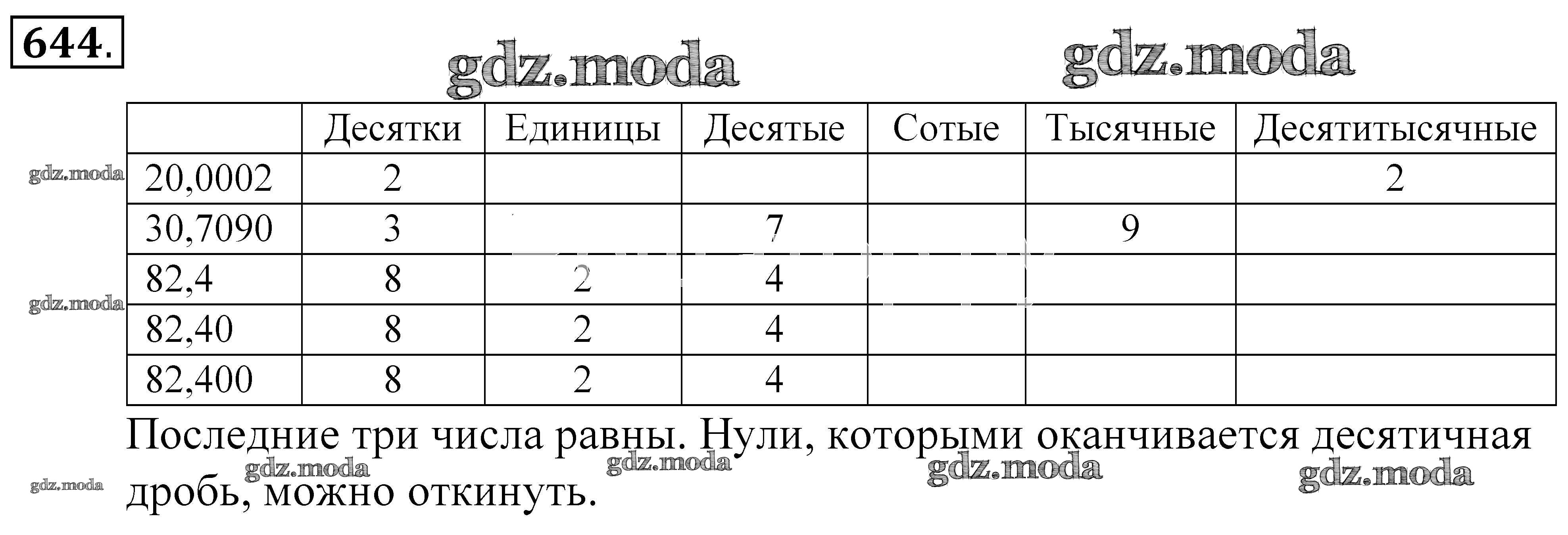 ОТВЕТ на задание № 644 Учебник по Математике 5 класс Зубарева