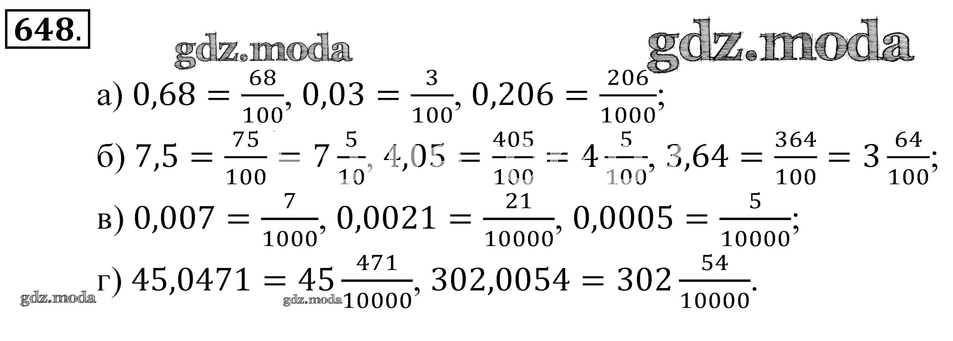 ОТВЕТ на задание № 648 Учебник по Математике 5 класс Зубарева