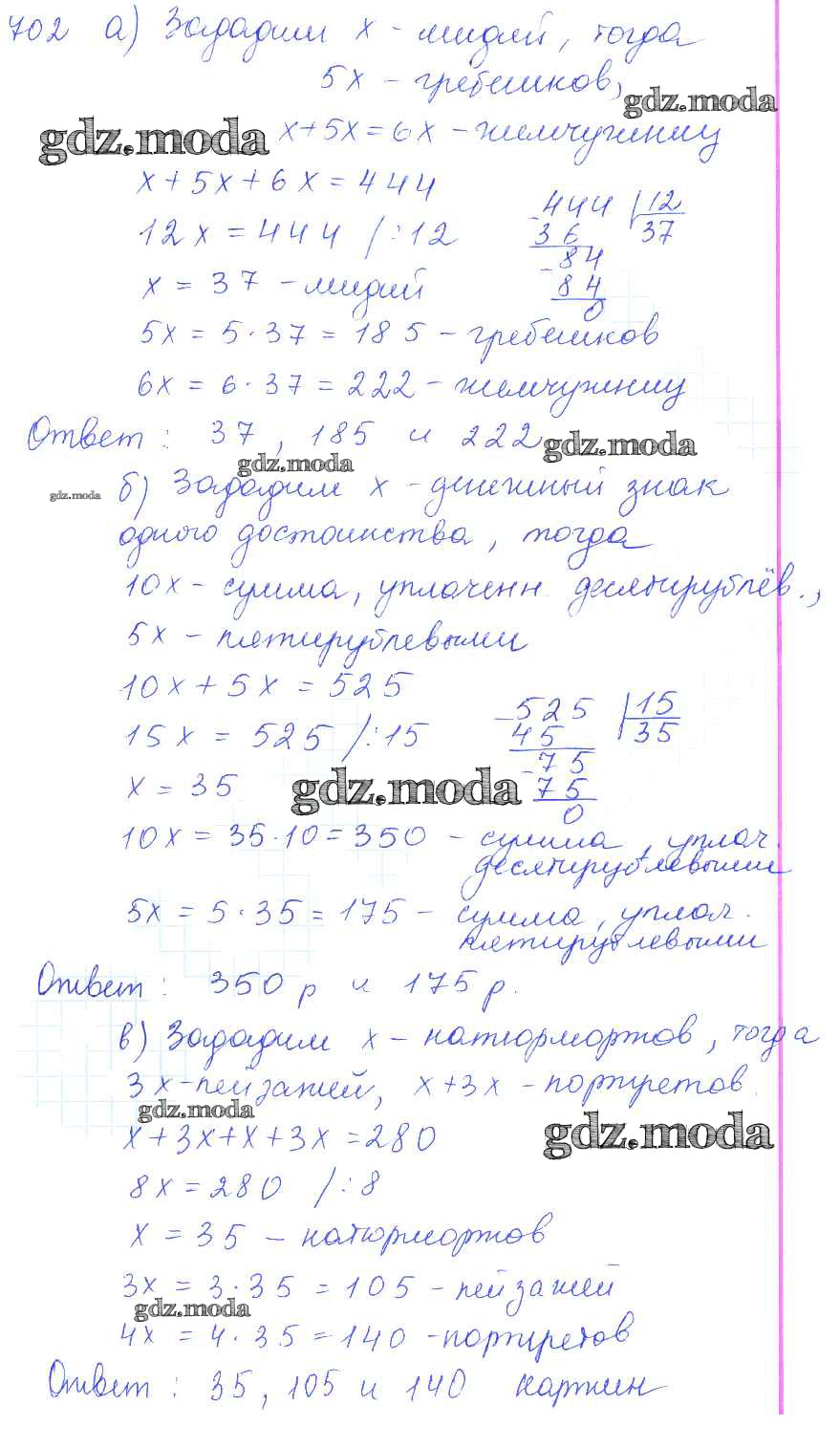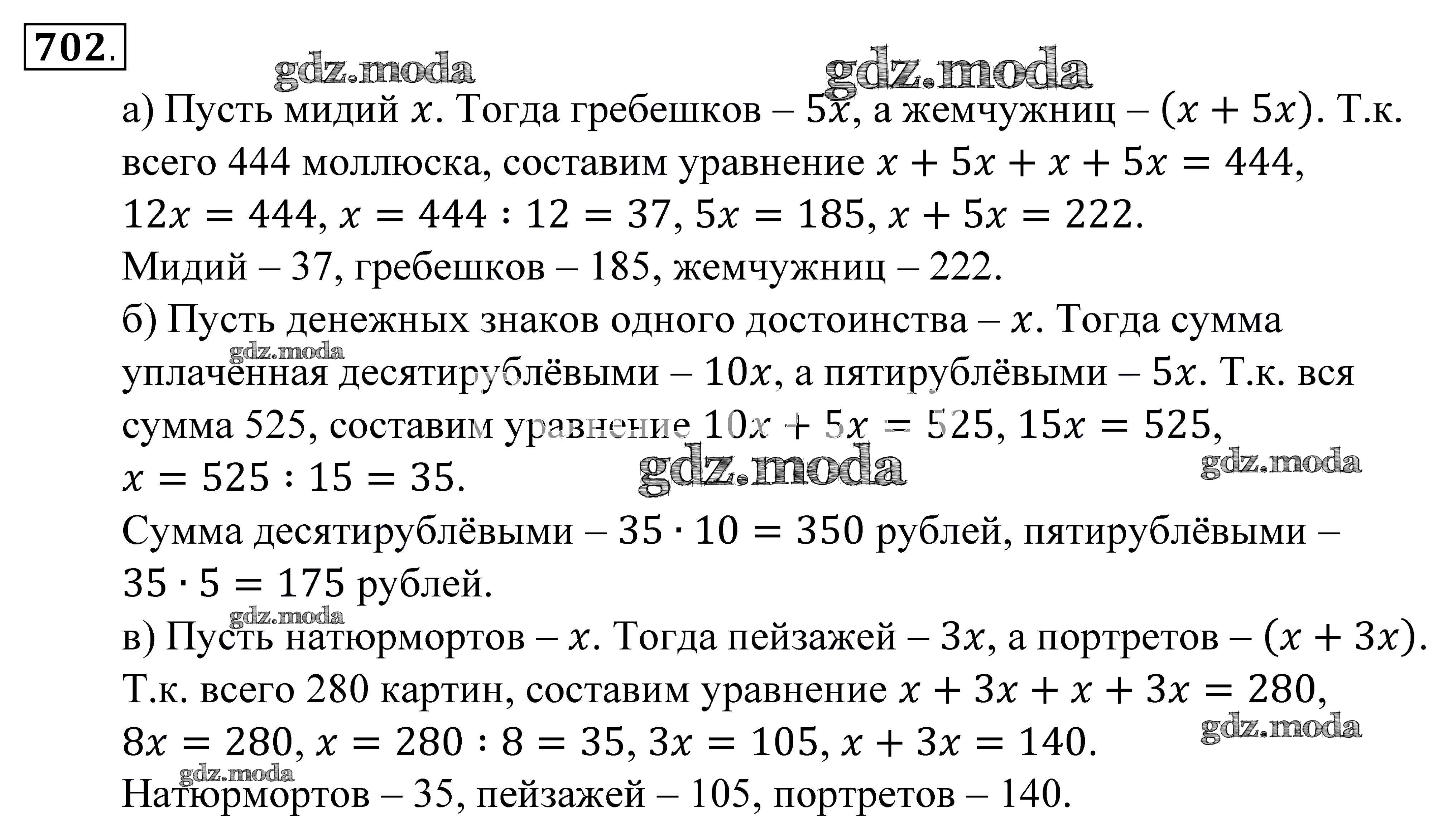 ОТВЕТ на задание № 702 Учебник по Математике 5 класс Зубарева