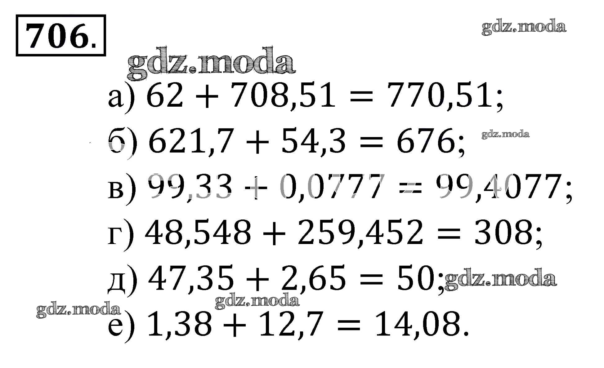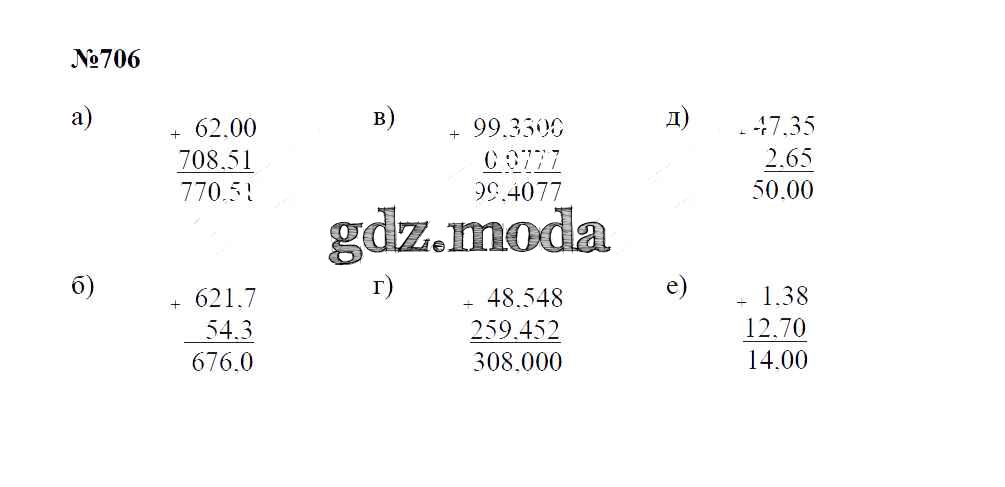 ОТВЕТ на задание № 706 Учебник по Математике 5 класс Зубарева