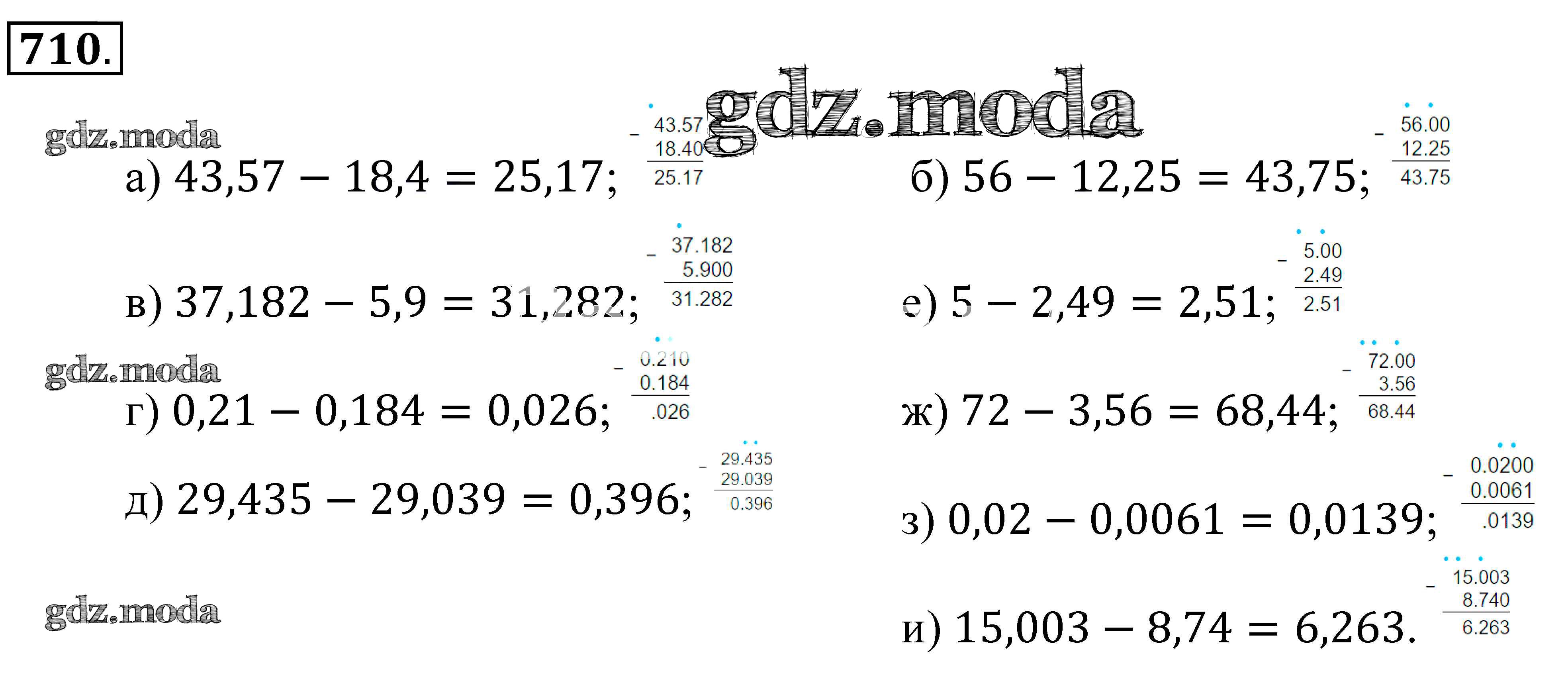 ОТВЕТ на задание № 710 Учебник по Математике 5 класс Зубарева