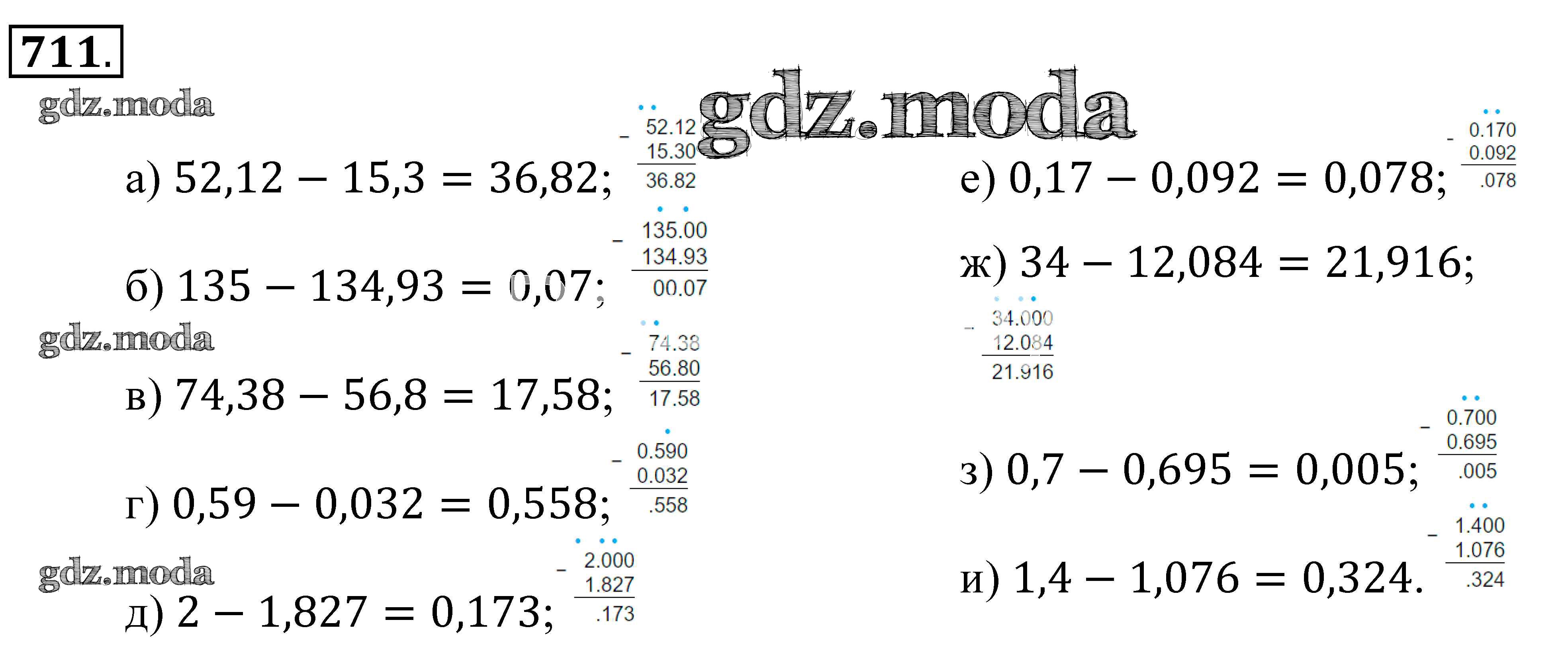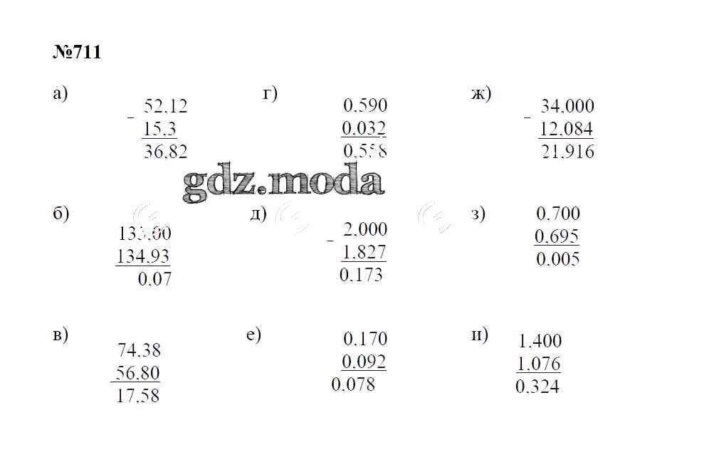 ОТВЕТ на задание № 711 Учебник по Математике 5 класс Зубарева