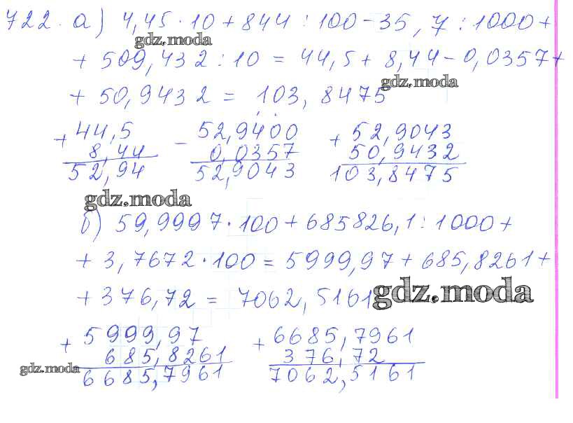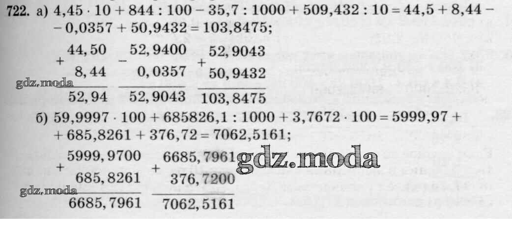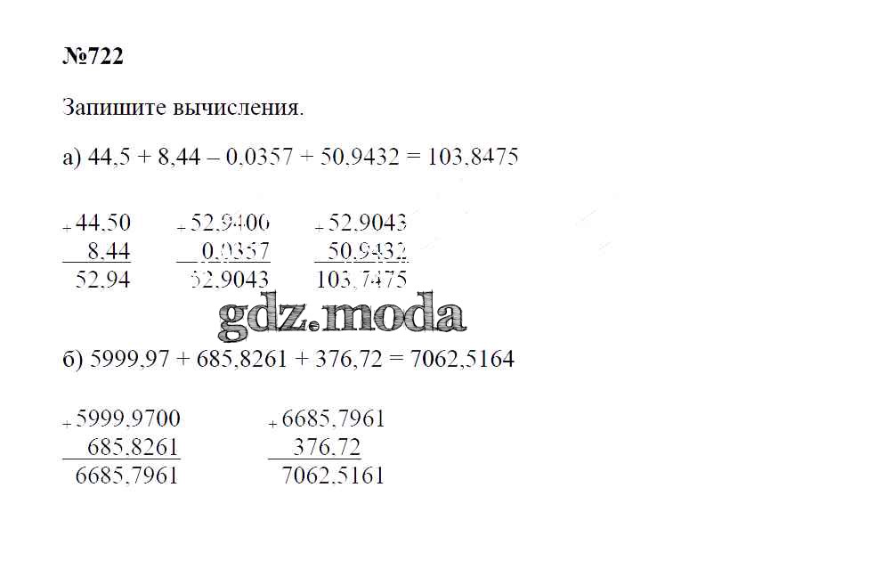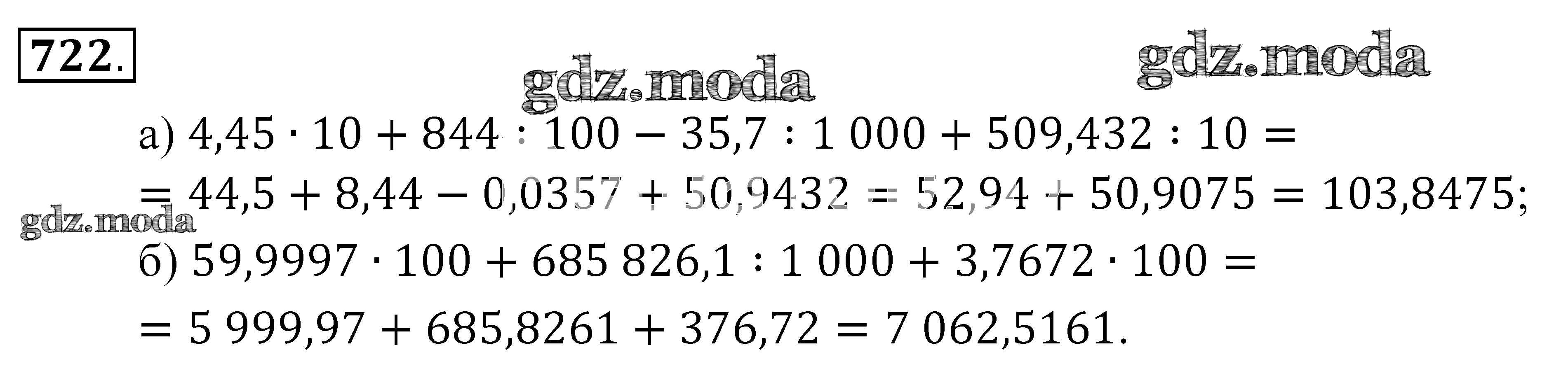 ОТВЕТ на задание № 722 Учебник по Математике 5 класс Зубарева