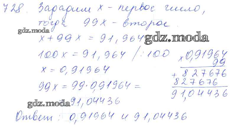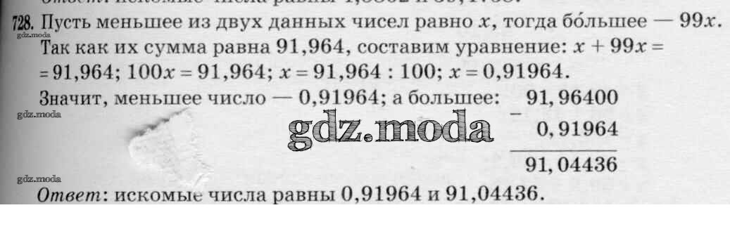ОТВЕТ на задание № 728 Учебник по Математике 5 класс Зубарева