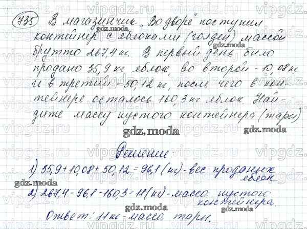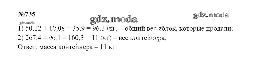 ОТВЕТ на задание № 735 Учебник по Математике 5 класс Зубарева