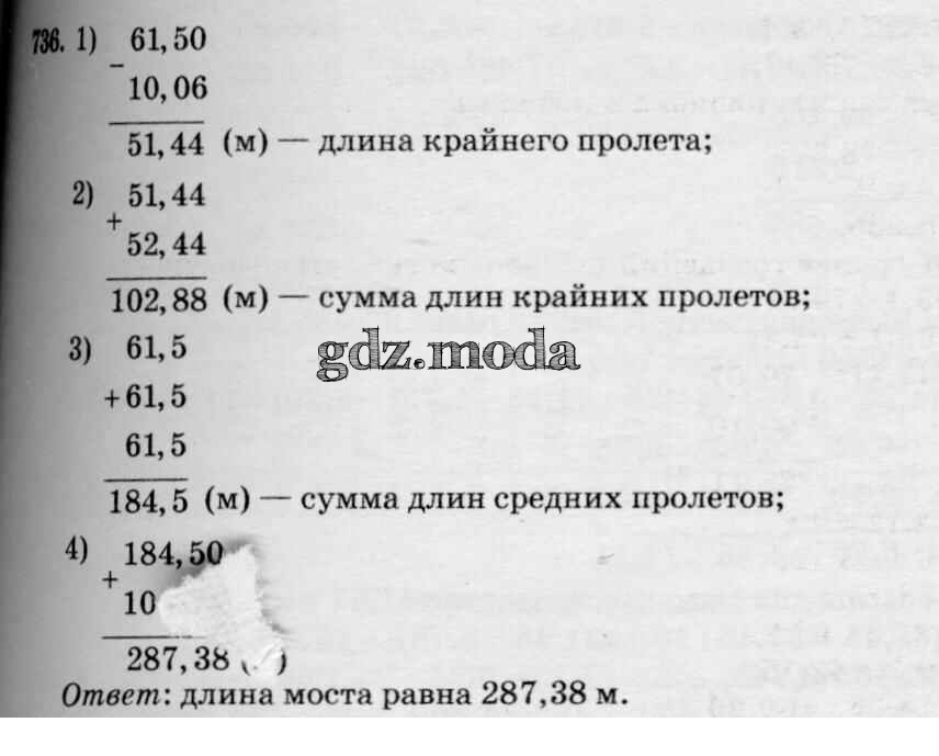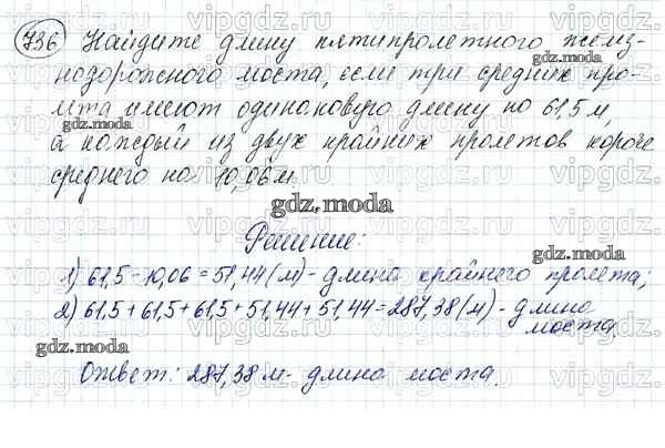 ОТВЕТ на задание № 736 Учебник по Математике 5 класс Зубарева