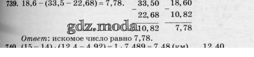 ОТВЕТ на задание № 739 Учебник по Математике 5 класс Зубарева