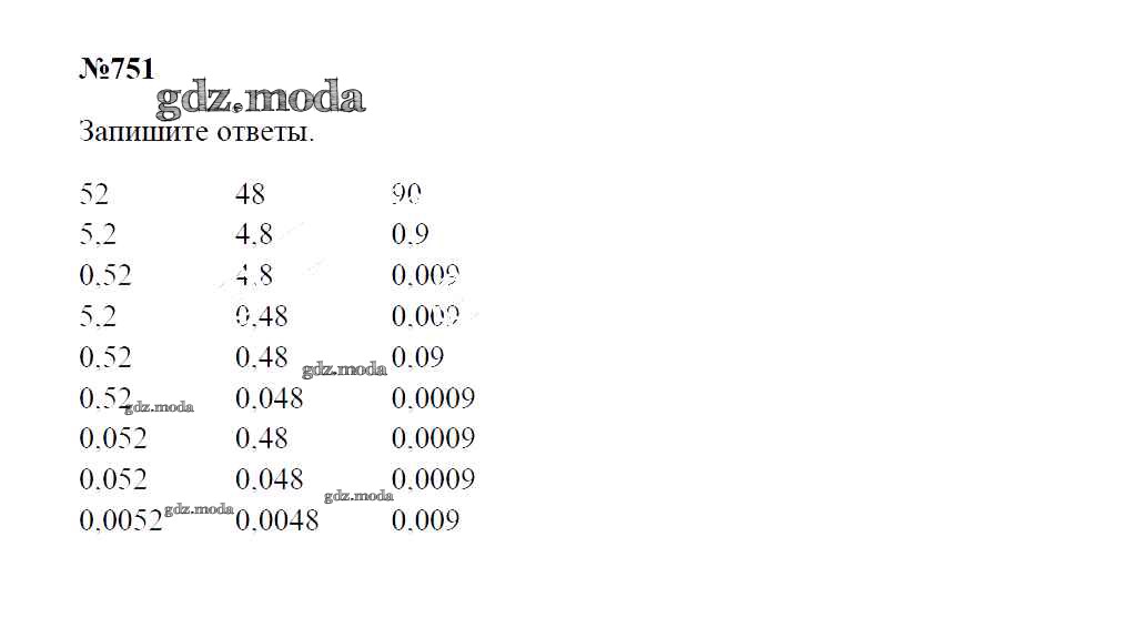 ОТВЕТ на задание № 751 Учебник по Математике 5 класс Зубарева