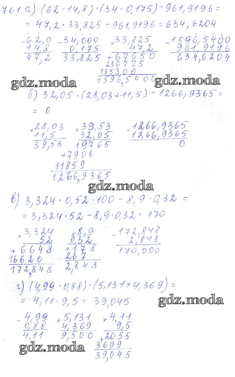 ОТВЕТ на задание № 761 Учебник по Математике 5 класс Зубарева