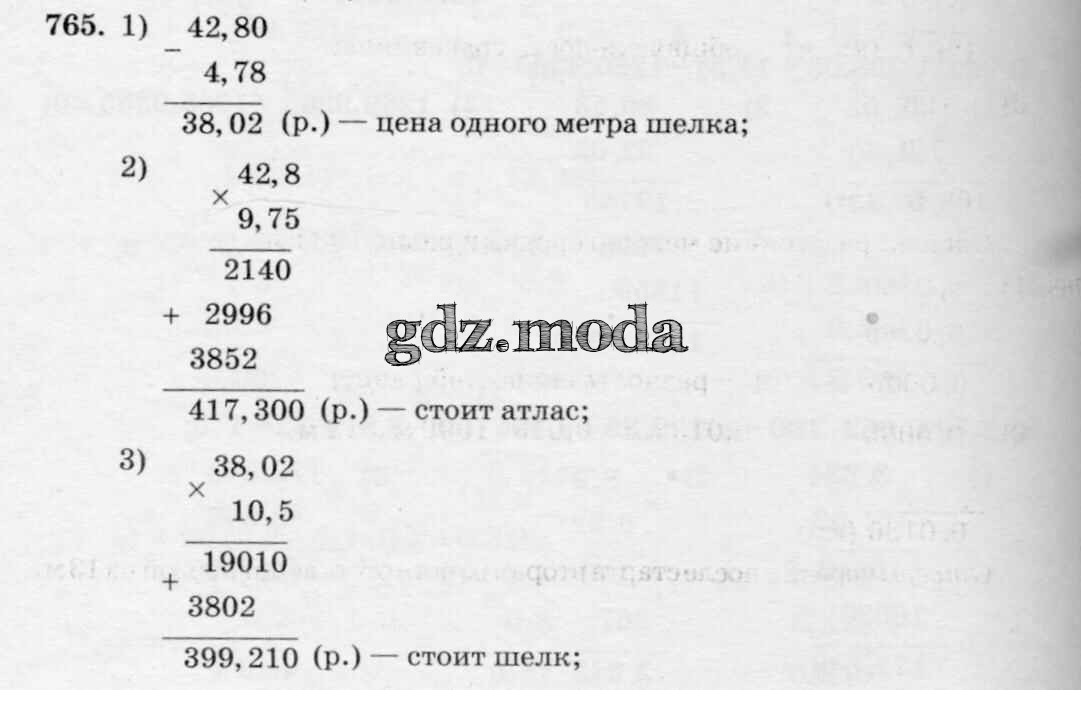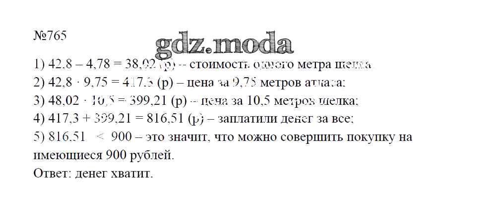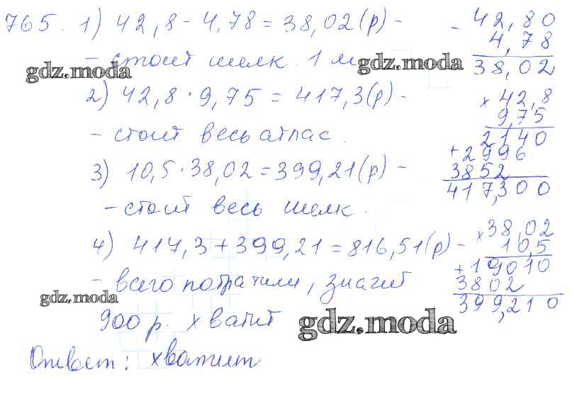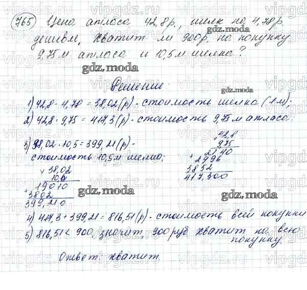 ОТВЕТ на задание № 765 Учебник по Математике 5 класс Зубарева