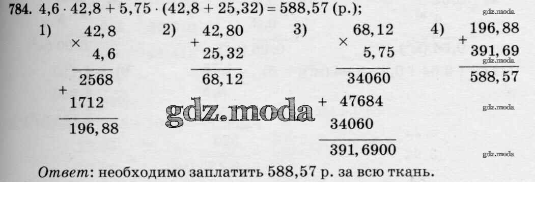 ОТВЕТ на задание № 784 Учебник по Математике 5 класс Зубарева