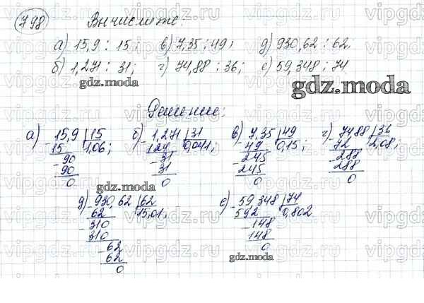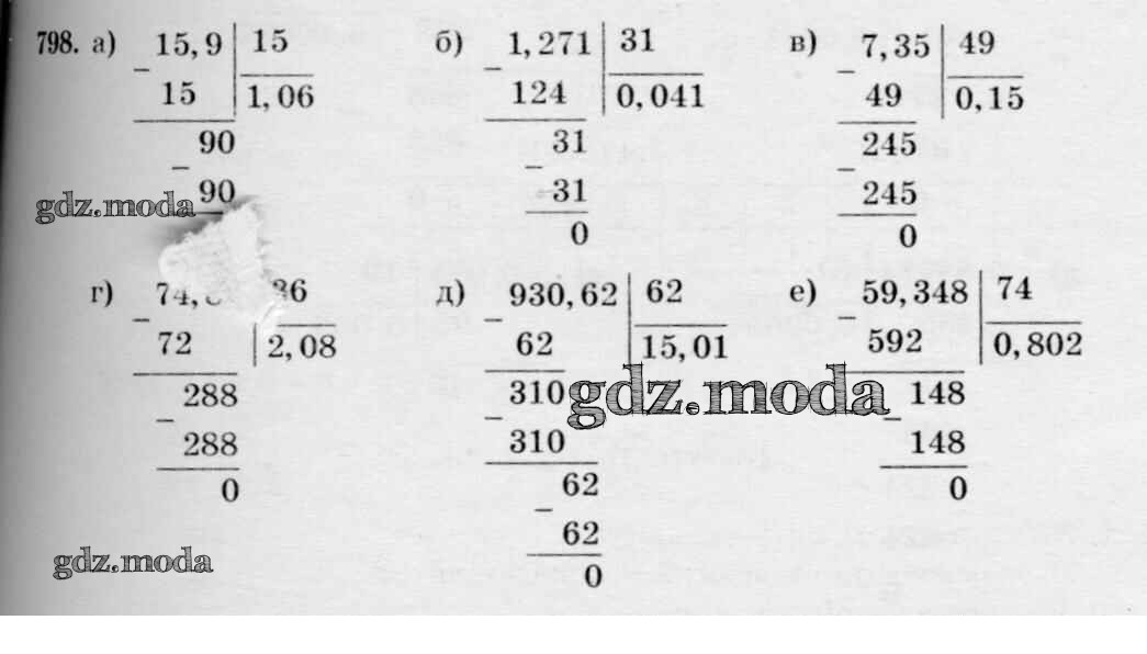 ОТВЕТ на задание № 798 Учебник по Математике 5 класс Зубарева