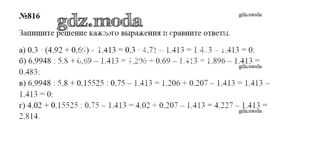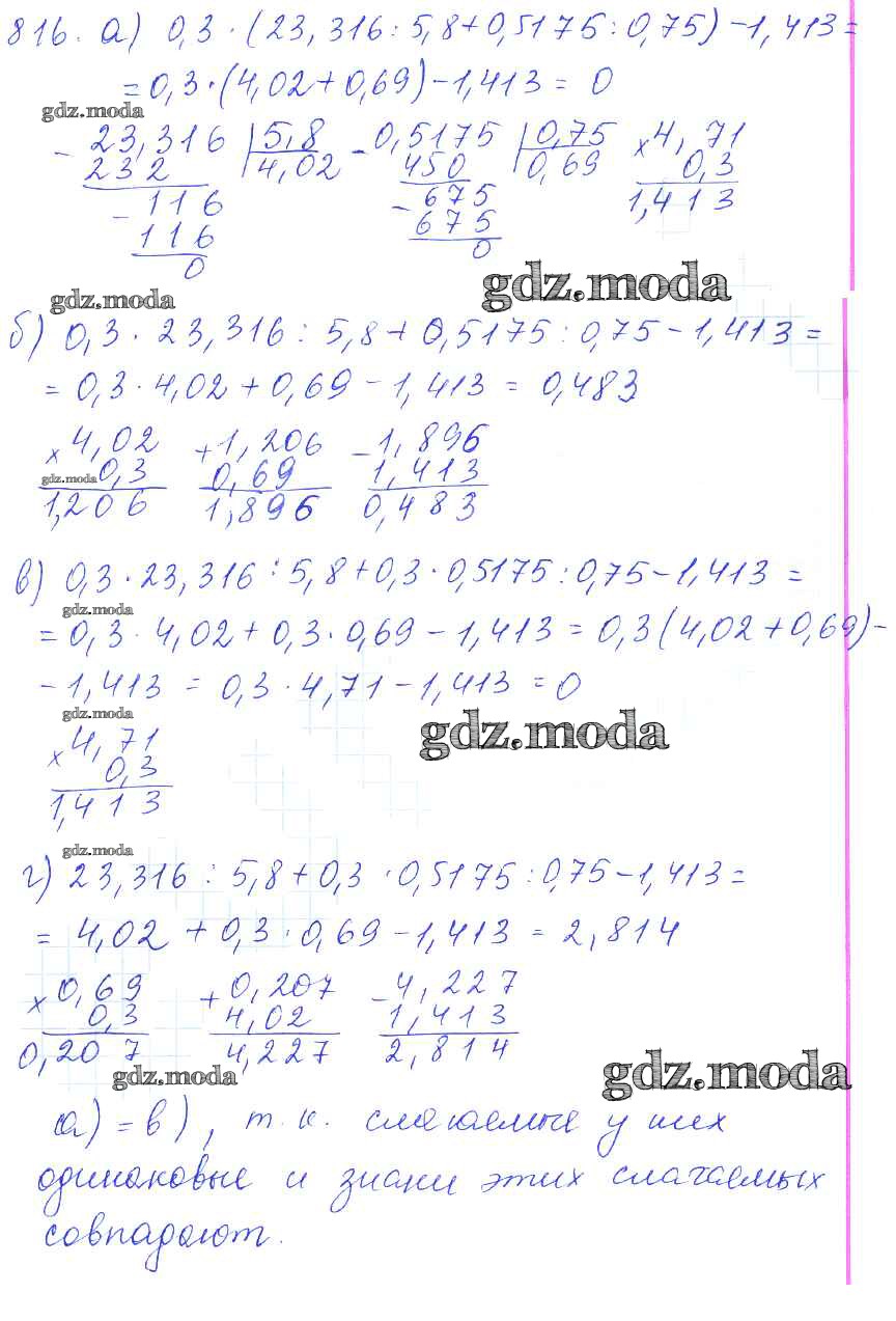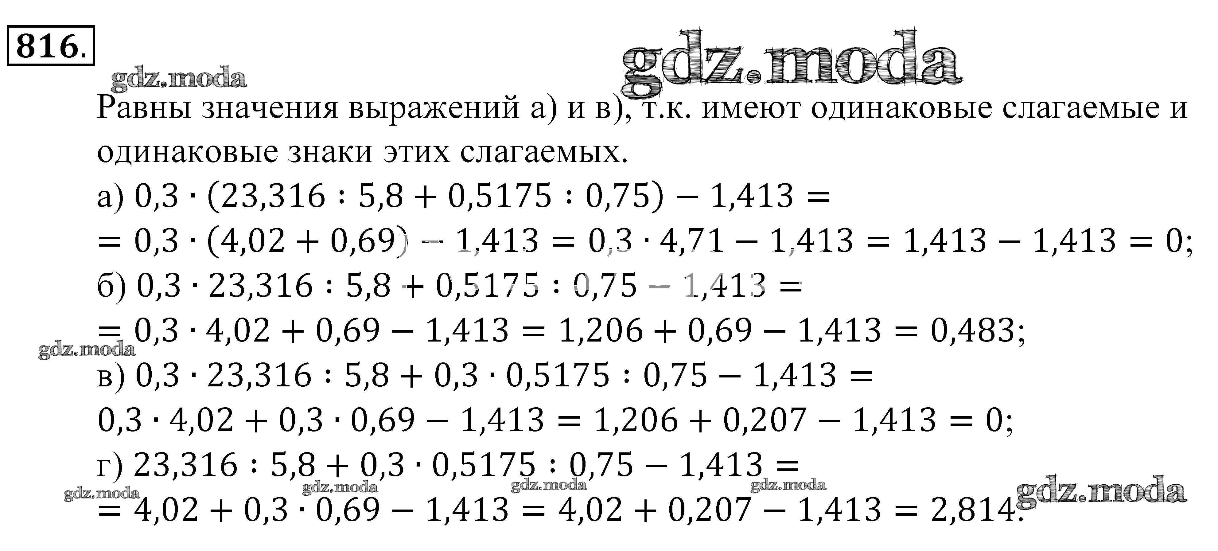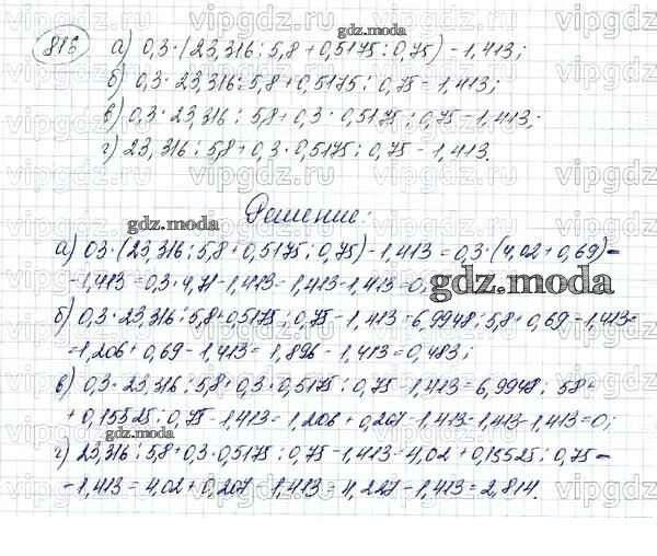 ОТВЕТ на задание № 816 Учебник по Математике 5 класс Зубарева
