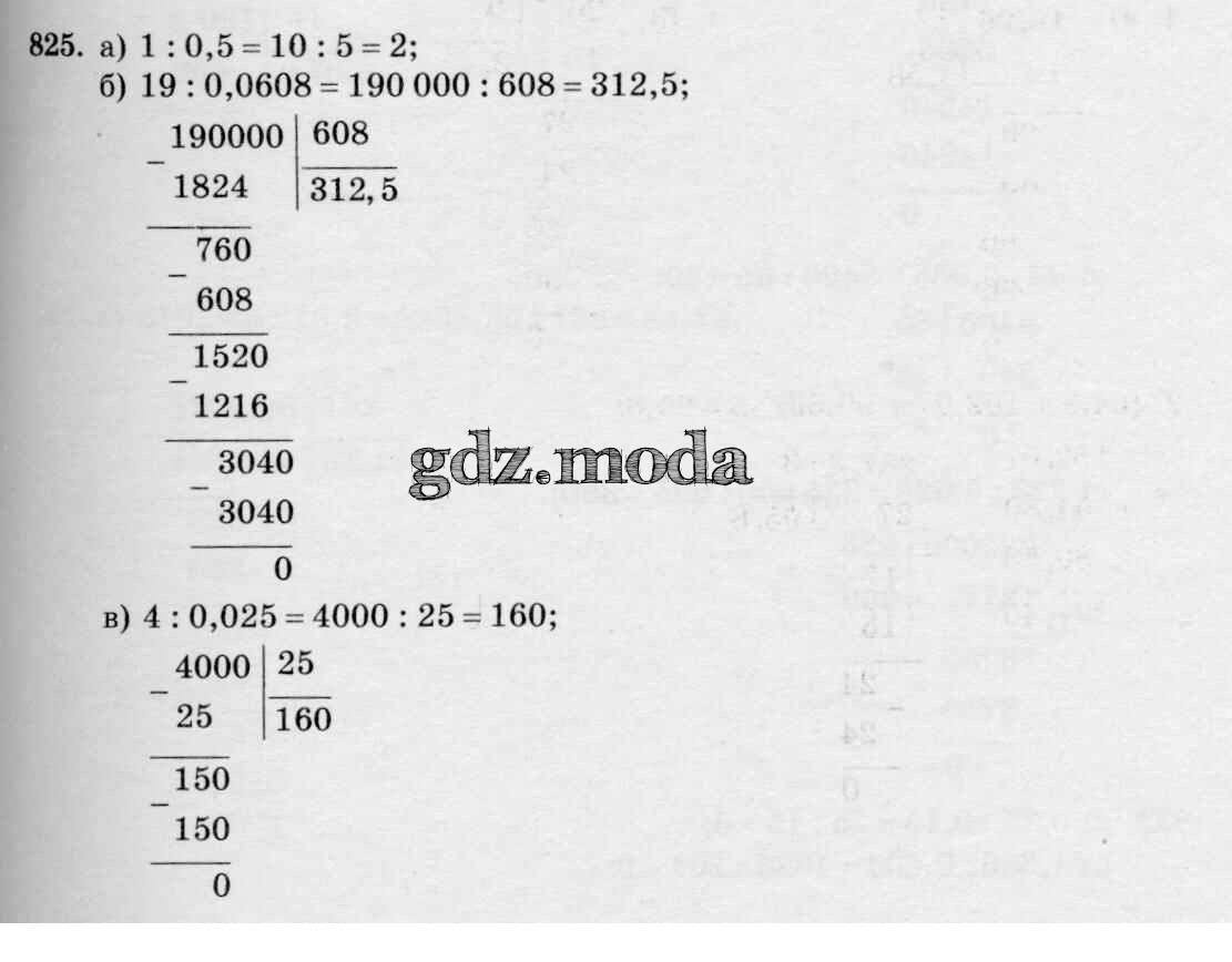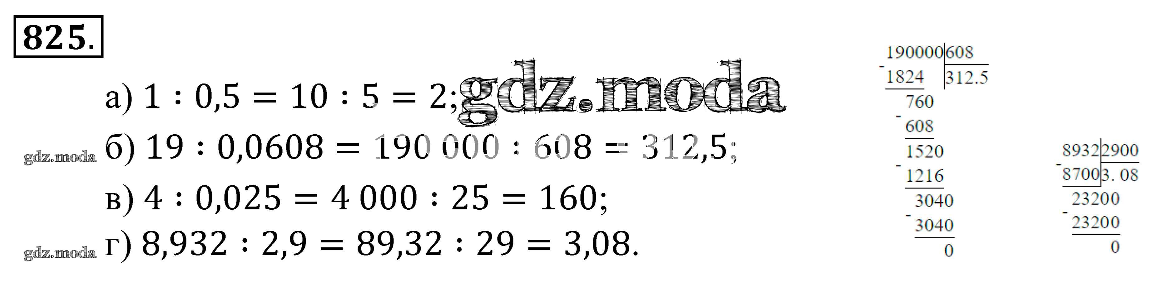 ОТВЕТ на задание № 825 Учебник по Математике 5 класс Зубарева