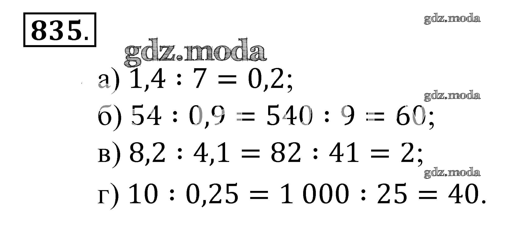 ОТВЕТ на задание № 835 Учебник по Математике 5 класс Зубарева