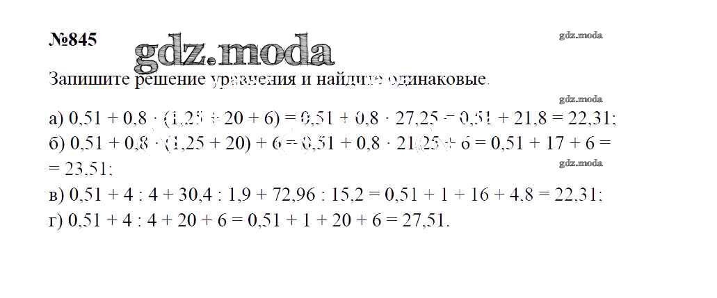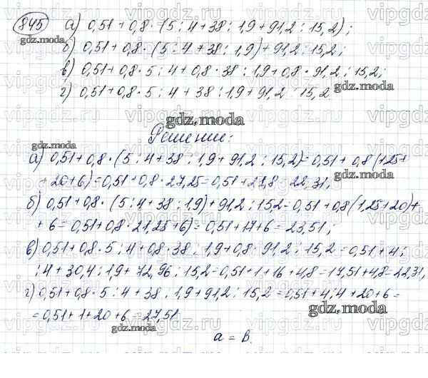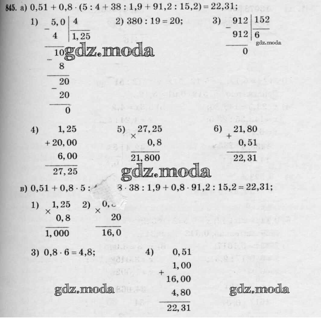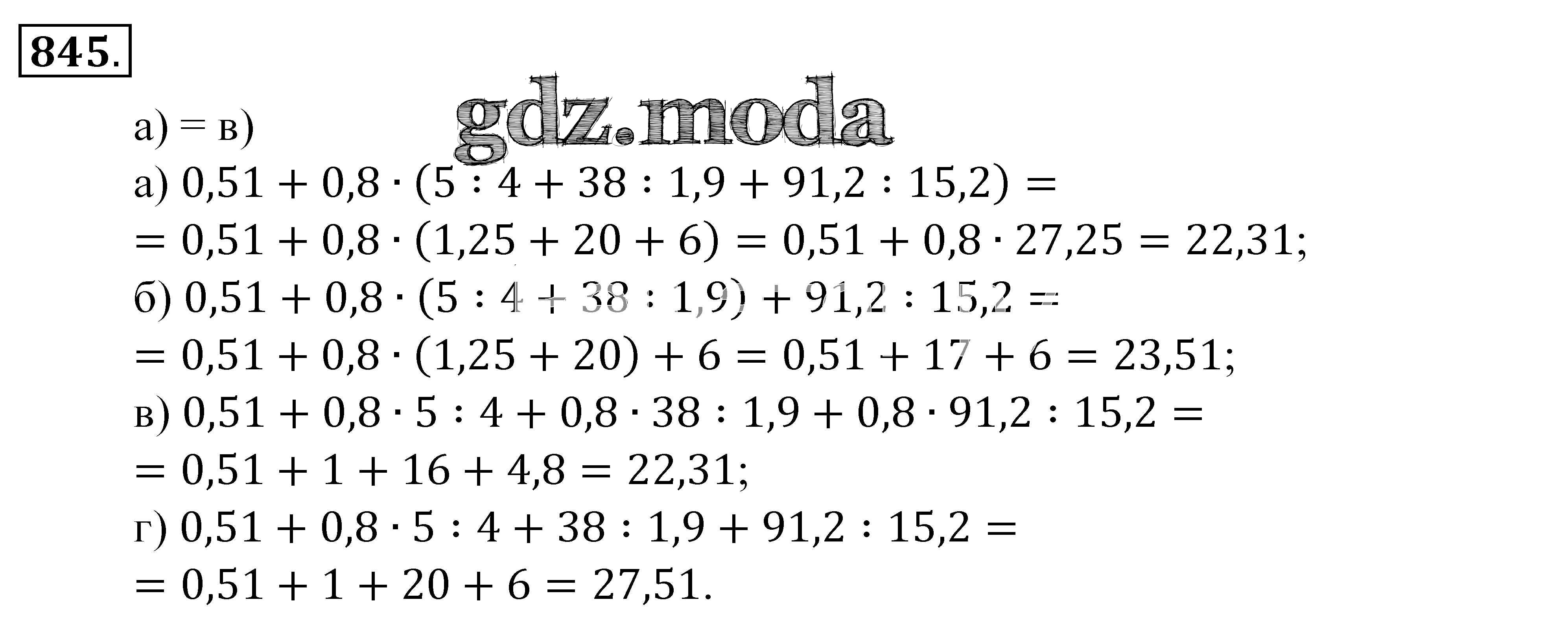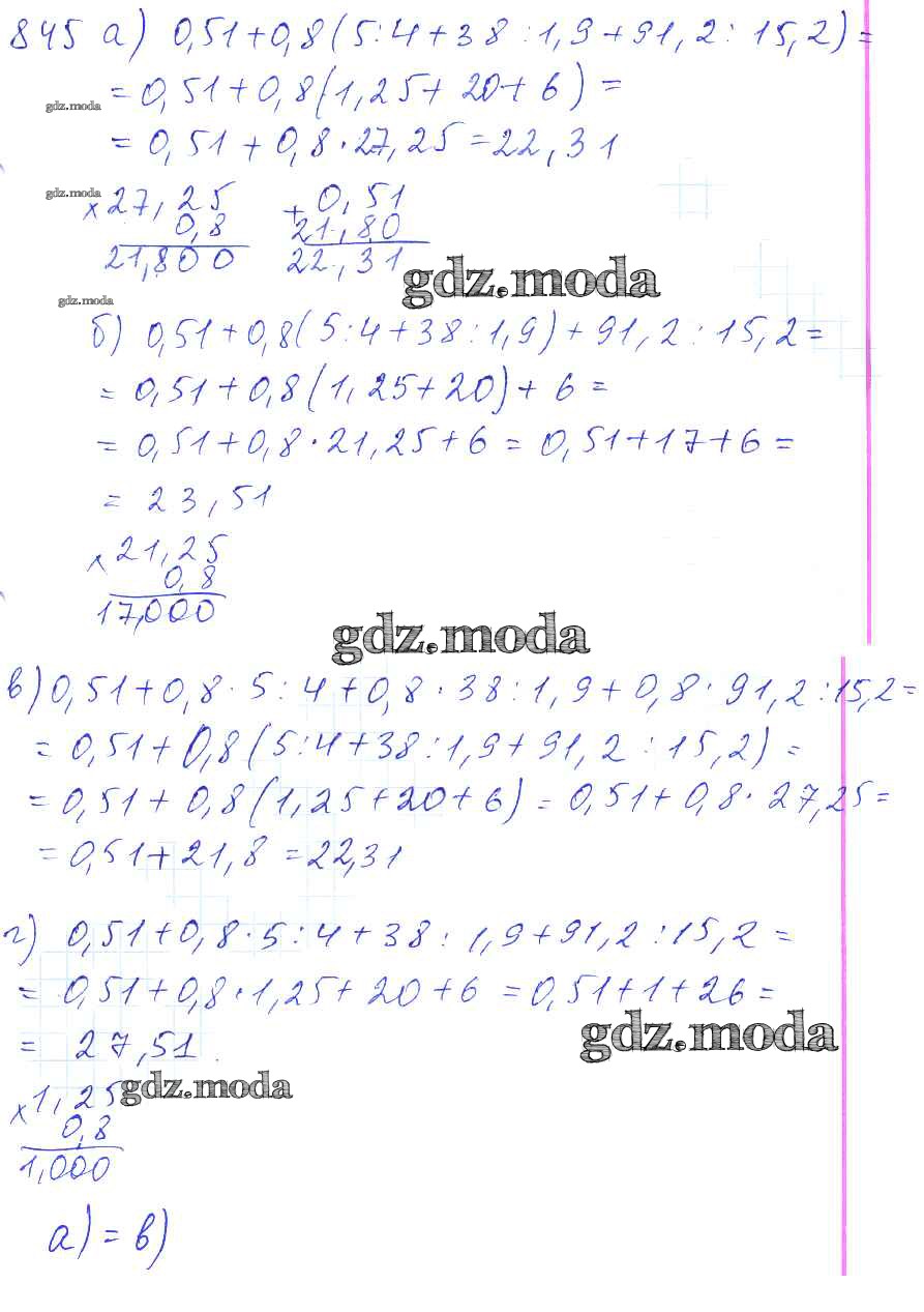 ОТВЕТ на задание № 845 Учебник по Математике 5 класс Зубарева