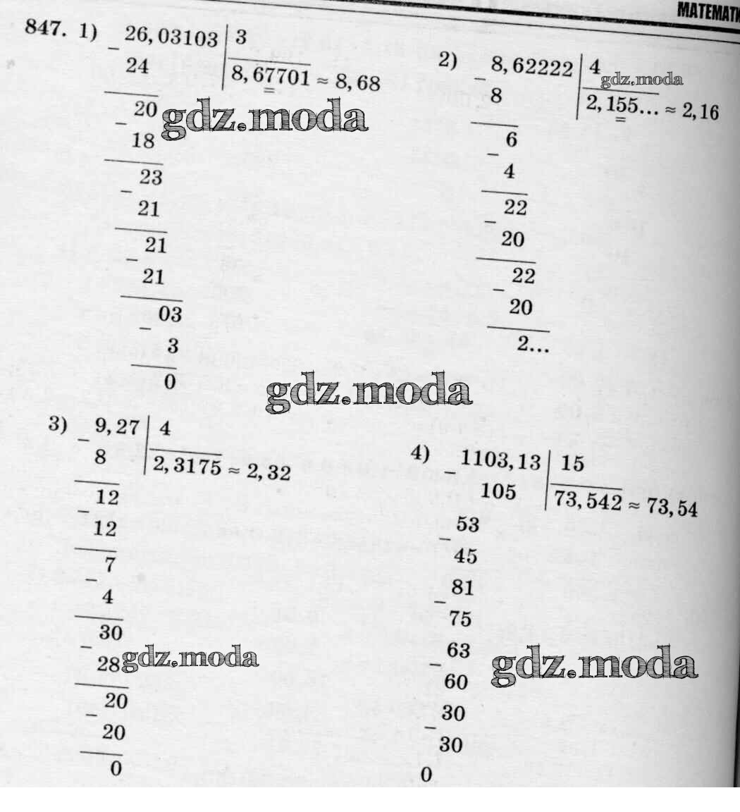 ОТВЕТ на задание № 847 Учебник по Математике 5 класс Зубарева