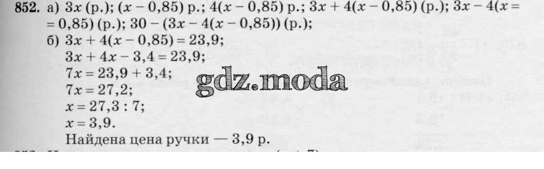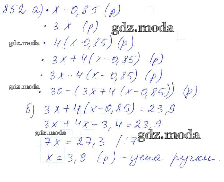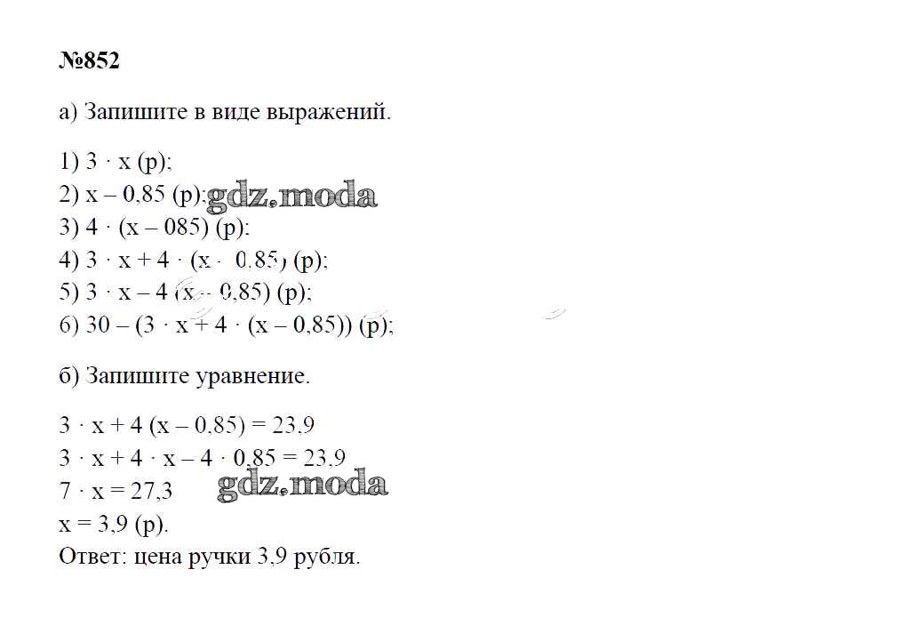 ОТВЕТ на задание № 852 Учебник по Математике 5 класс Зубарева
