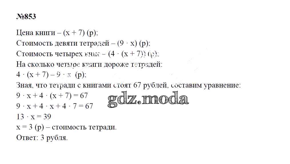 ОТВЕТ на задание № 853 Учебник по Математике 5 класс Зубарева