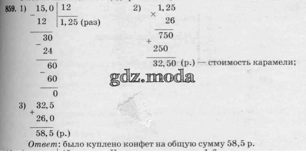 ОТВЕТ на задание № 859 Учебник по Математике 5 класс Зубарева