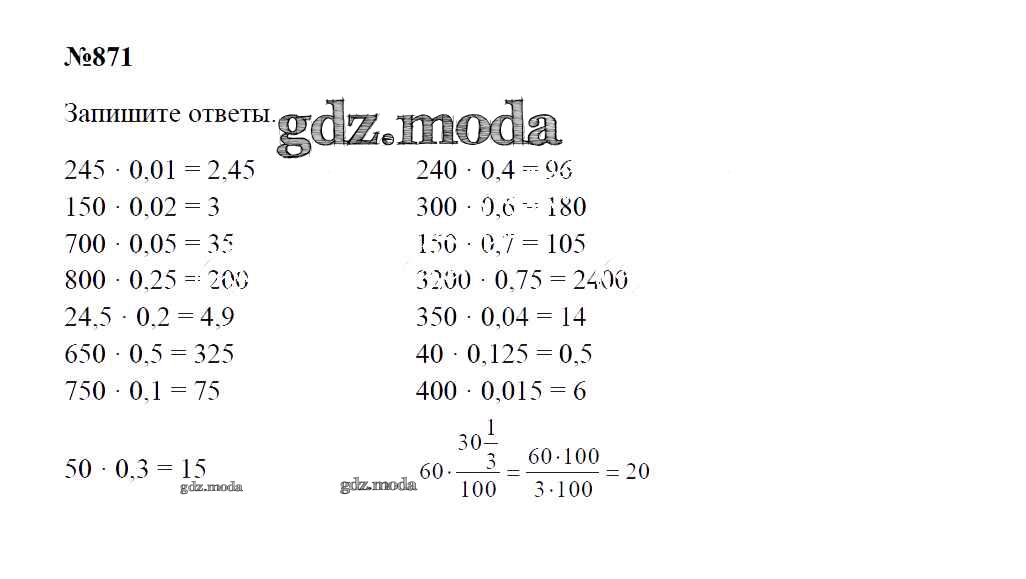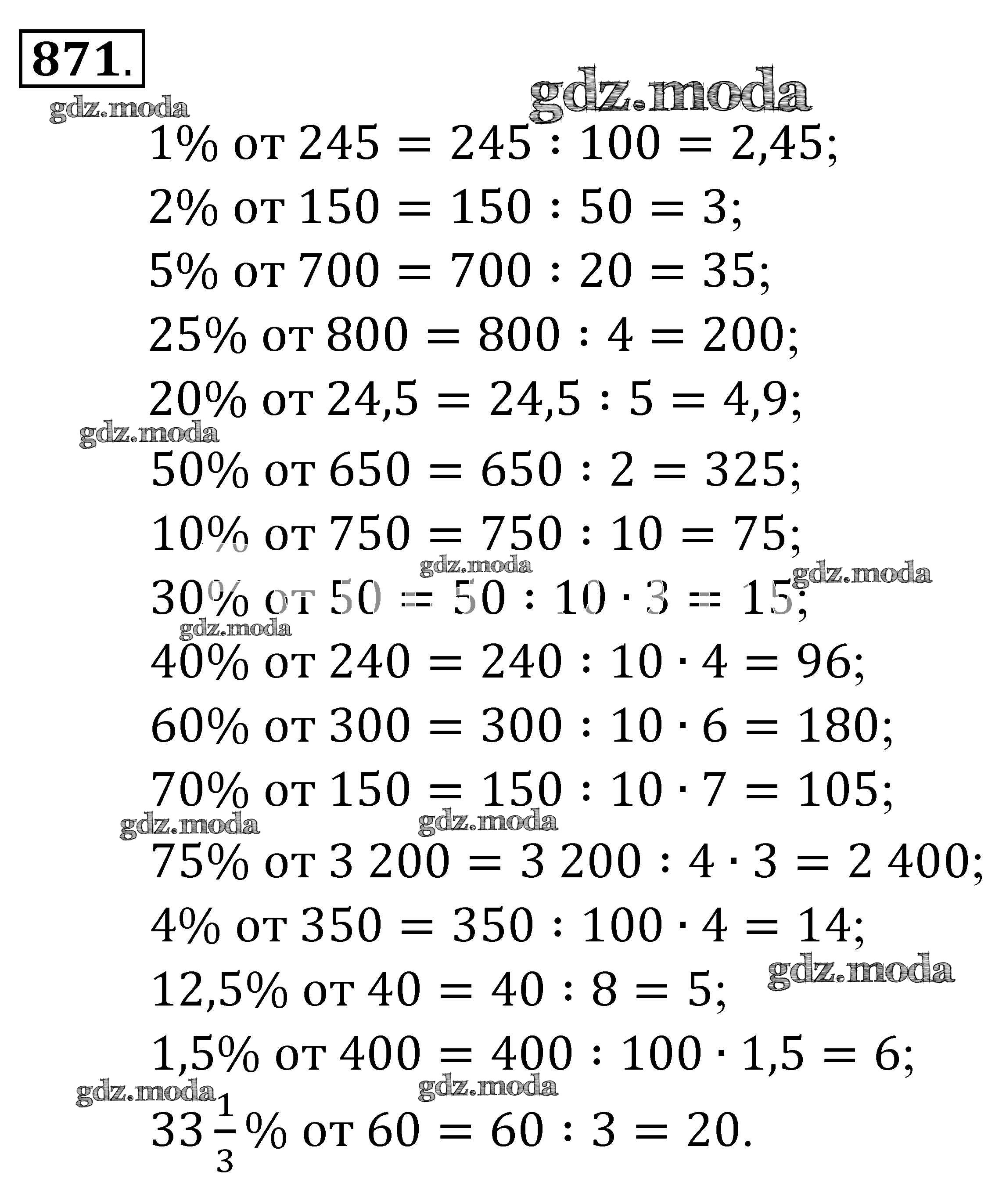 ОТВЕТ на задание № 871 Учебник по Математике 5 класс Зубарева