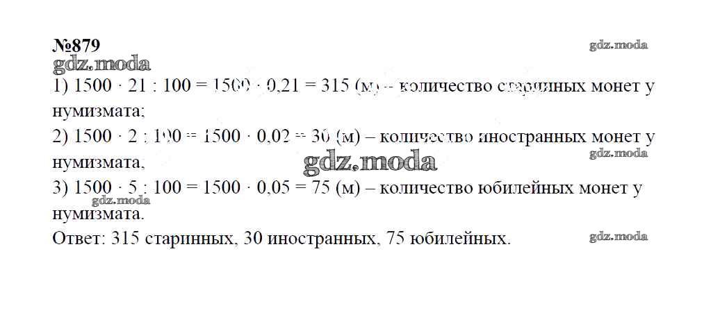 ОТВЕТ на задание № 879 Учебник по Математике 5 класс Зубарева
