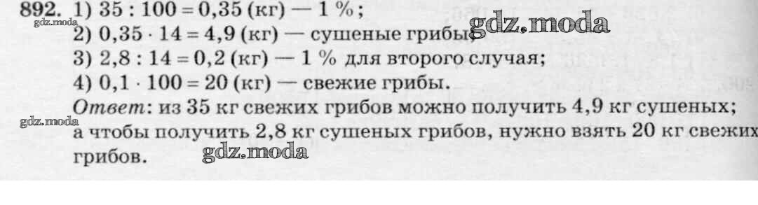 ОТВЕТ на задание № 892 Учебник по Математике 5 класс Зубарева