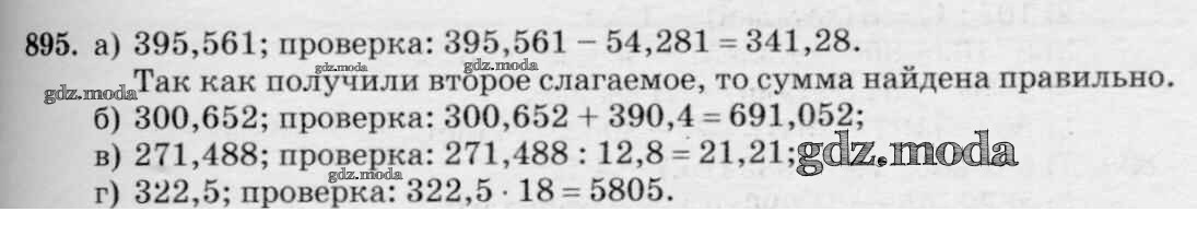 ОТВЕТ на задание № 895 Учебник по Математике 5 класс Зубарева