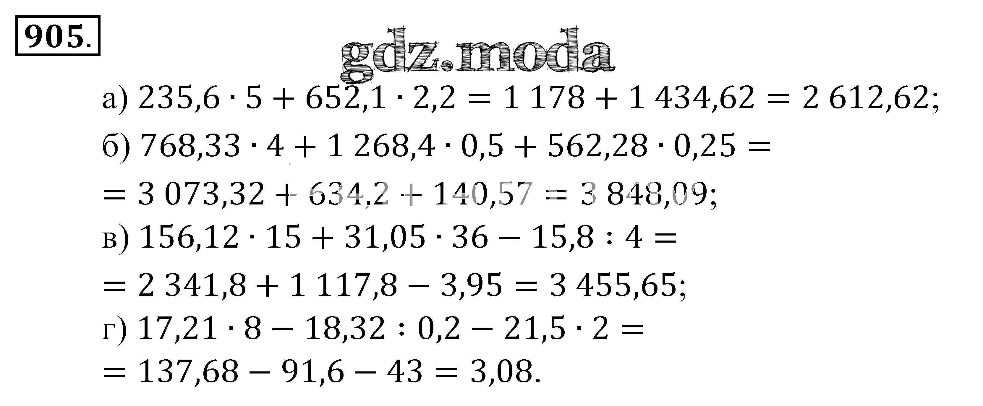 ОТВЕТ на задание № 905 Учебник по Математике 5 класс Зубарева