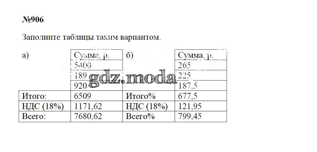 ОТВЕТ на задание № 906 Учебник по Математике 5 класс Зубарева