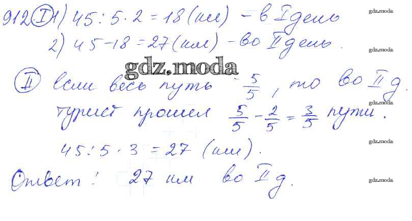 ОТВЕТ на задание № 912 Учебник по Математике 5 класс Зубарева