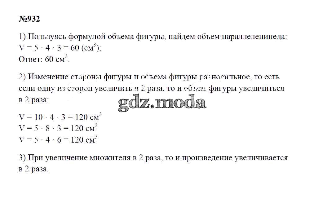 ОТВЕТ на задание № 932 Учебник по Математике 5 класс Зубарева